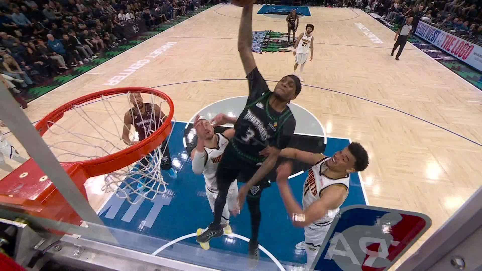 Jaden McDaniels has the crowd in a frenzy after massive slam